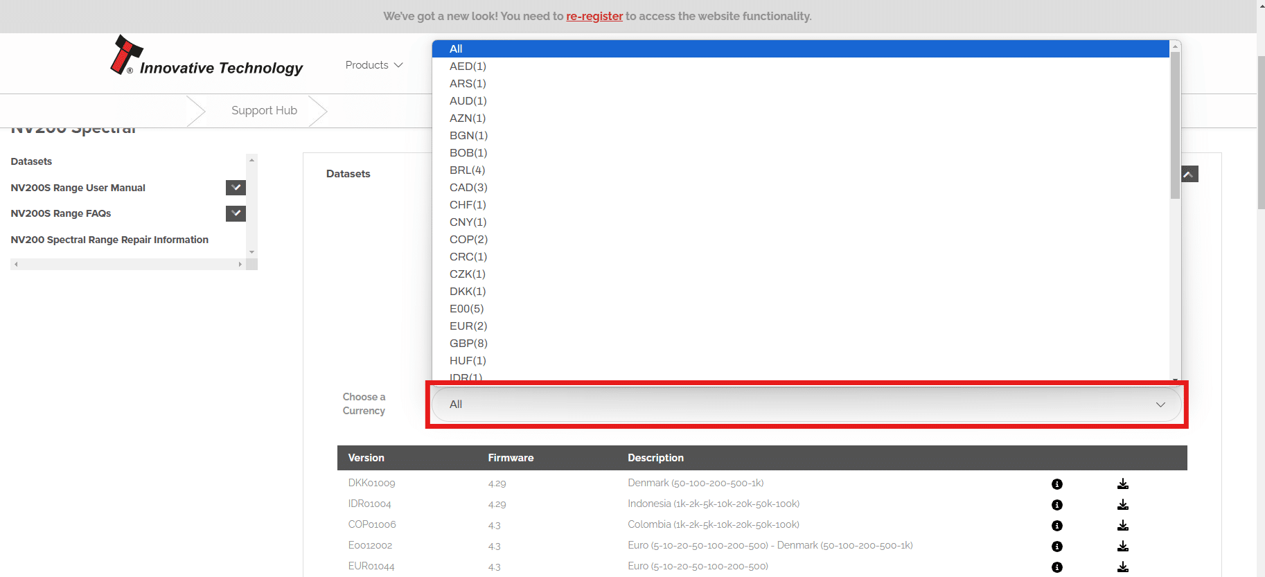 All support content, including datasets are now contained within the Support Hub of the website.