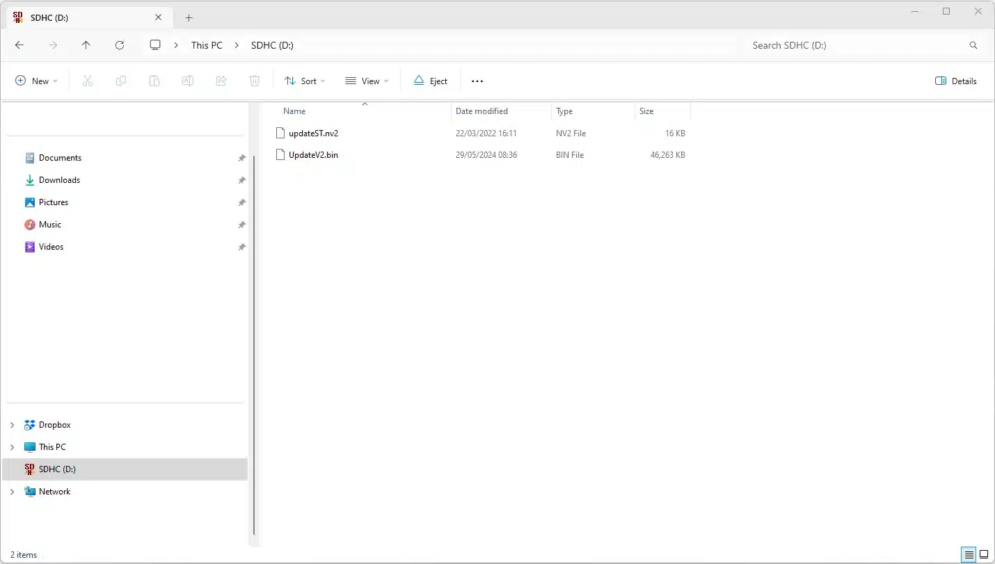 Place SD Card into PC memory card reader and copy UpdateV2.bin to the root of the SD Card